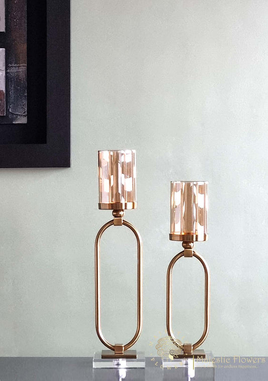 UitverkochtKandelaar goud luster kristal glas