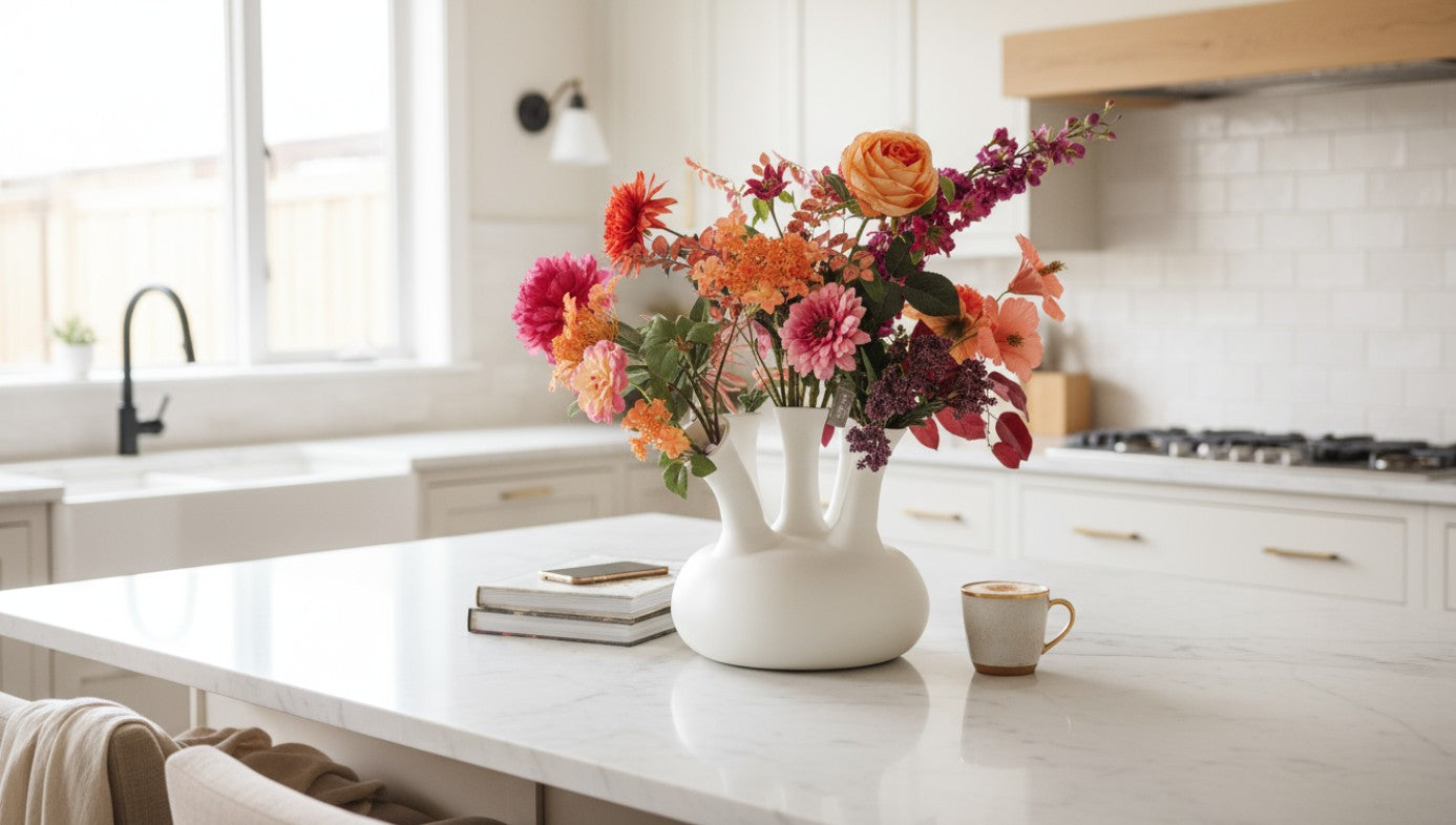 De combinatie van prachtige natuurlijke lichte kleuren zorgt ervoor dat dit kunstboeket een rustgevende uitstraling heeft. Een schitterend boeket dat in elk interieur past! Net als al onze andere boeketten is dit met zorg samengesteld en daardoor echt uniek. Combineer het boeket met één van onze andere vazen uit de collectie . Heb jij een eigen vaas? Neem dan contact met ons op.